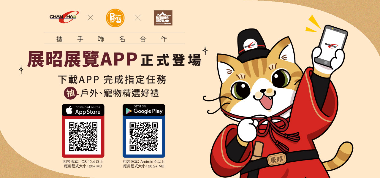 下載【展昭展覽APP】,並完成指定任務(wù),就有機會獲得戶外、寵物精選好禮??